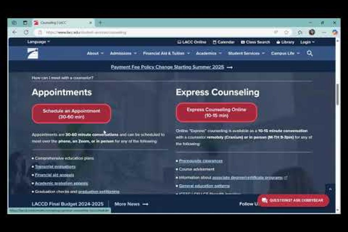 General Counseling is a “one-stop shop” to help facilitate your educational endeavors which we hope will culminate in you graduating from LACC and/or transferring to a university. Through our online and in-person services you will be able to: